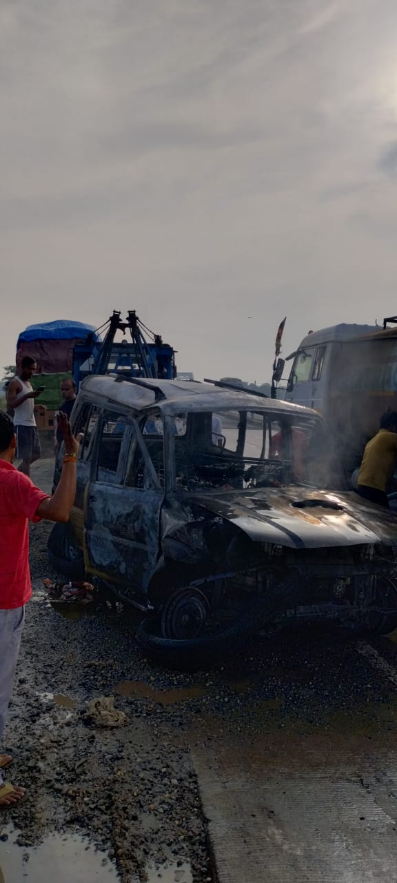 किशनगंज जिले के कुर्लीकोट थाना क्षेत्र में शुक्रवार की अहले सुबह एनएच 327 ई पर चौहान ढाबा के समीप बंगाल से आ रही स्कॉर्पियो अनियंत्रित होकर रेलिंग से टकरा गई। टक्कर इतना जबरदस्त था कि टक्कर के बाद ही वाहन में अचानक आग लग गई।