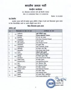 लेकिन बुधवार यानी आज चर्चाओं पर विराम लगाते हुए उन्हें पार्टी ने अलीनगर से चुनाव मैदान में उतारा है ।मालूम हो कि इससे पहले भाजपा ने 71 उम्मीदवारों की सूची जारी की थी।राज्य के 101 सीटों पर भाजपा चुनाव लड़ने वाली है । सूत्रों की माने तो आज रात तक या कल तक अन्य बचे हुए सीट के उम्मीदवारों के नामों का ऐलान भी पार्टी द्वारा कर दिया जाएगा