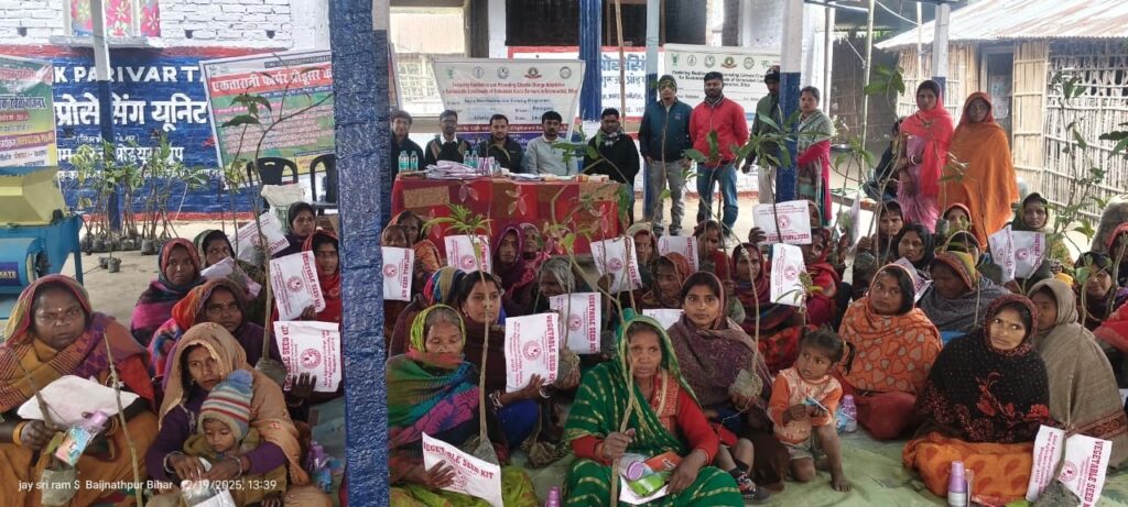 अररिया जिले के रानीगंज प्रखंड अंतर्गत कलाबलुआ पंचायत में प्रशिक्षण सह इनपुट वितरण कार्यक्रम का आयोजन किया गया। यह कार्यक्रम ICAR-IIAB प्रायोजित अनुसूचित जाति उपयोजना (SCSP) के अंतर्गत “सीमांचल क्षेत्र के अनुसूचित जाति किसानों में जलवायु सहनशीलता को सुदृढ़ करना एवं जलवायु अनुकूलन तकनीकों का प्रसार” विषय पर आयोजित किया गया। कार्यक्रम का आयोजन डॉ. कलाम कृषि महाविद्यालय, किशनगंज की परियोजना टीम — डॉ. कृष्णा डी. के., स्नेहल चक्रवर्ती, नागार्जुन एवं केविन क्रिस्टोफर — द्वारा प्रदान (PRADAN) एनजीओ, रानीगंज प्रखंड, अररिया के सहयोग से किया गया।