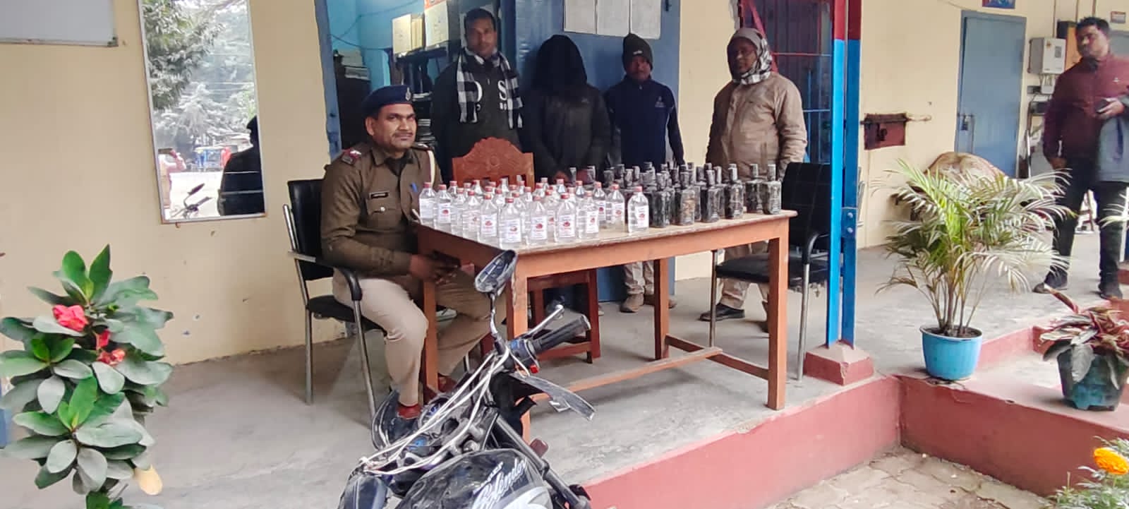 टेढ़ागाछ थाना क्षेत्र अंतर्गत झाला चौक के समीप पुलिस ने बड़ी कार्रवाई करते हुए भारी मात्रा में अवैध शराब के साथ एक आरोपी को गिरफ्तार किया है। यह कार्रवाई रविवार को गश्ती के दौरान की गई। अपर थानाध्यक्ष रितेश कुमार ने मामले की जानकारी देते हुए बताया कि सब इंस्पेक्टर अनीमा कुमारी अन्य पुलिस बल के साथ नियमित गश्ती पर निकली थीं।