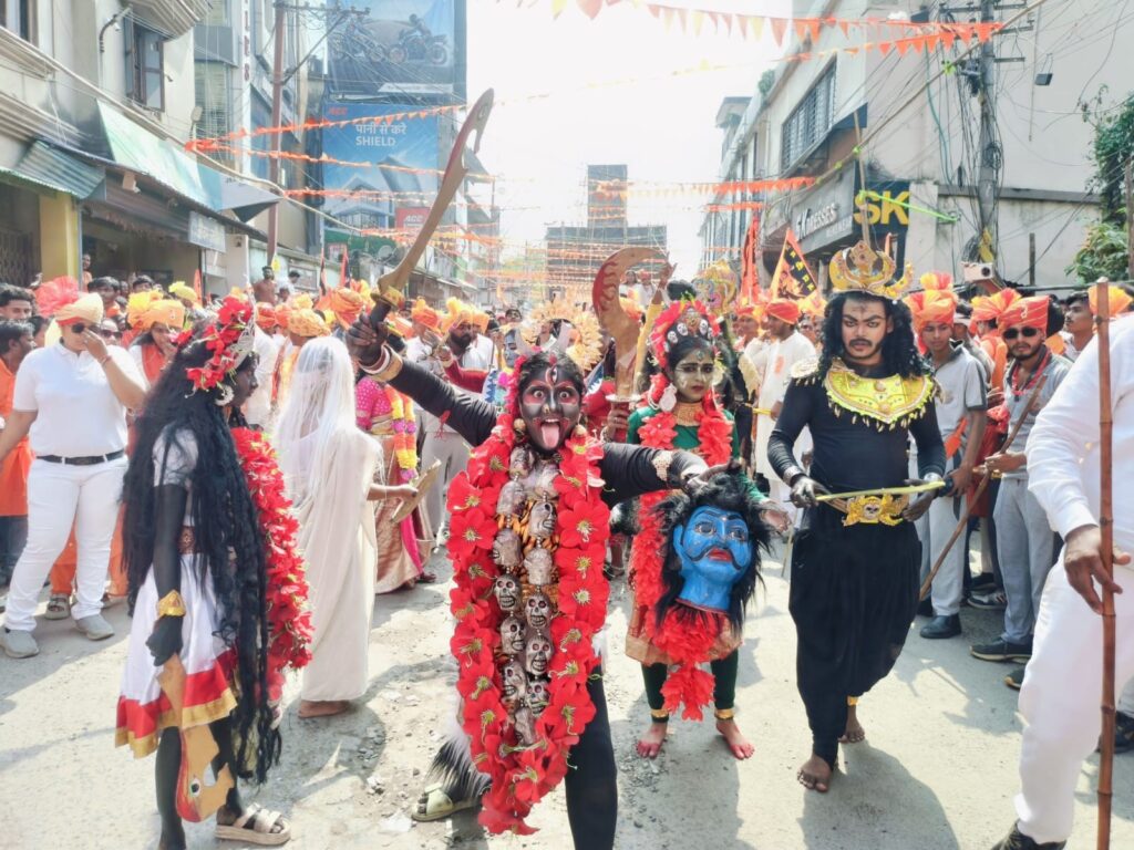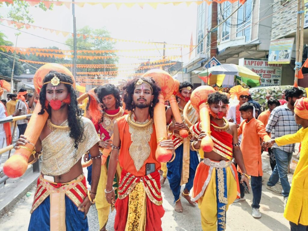 गाजे बाजे के साथ निकली शोभा यात्रा देखने के लिए हजारों की संख्या में लोग पहुंचे और भक्ति गीतों पर जम कर थिरके ।शोभा यात्रा में भगवान राम और माता जानकी ,महादेव,बजरंगबली की वेशभूषा में निकली झांकी को देखने के लिए लोगो की भीड़ उमड़ पड़ी। वही बैंड पार्टी और ढाक की धुन पर राम भक्त जम कर थिरके ।राम नाम के जयकारे से पूरा शहर गुंजायमान हो उठा ।