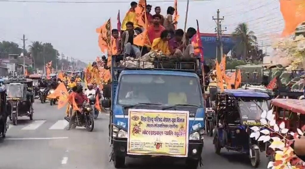 नेपाल के विराटनगर में रामनवमी के अवसर पर भव्य रथ यात्रा जुलूस निकाला गया, जिसमें हजारों की संख्या में रामभक्त युवक-युवतियों ने भाग लिया। डीजे की धुन पर रामभक्त झूमते-नाचते नजर आए और पूरा माहौल “जय श्री राम” के नारों से गूंज उठा। राम धुन पर थिरकते युवाओं का उत्साह देखते ही बन रहा था। शहर की सड़कों पर आस्था और उल्लास का अनोखा संगम देखने को मिला।नेपाल के मंदिरों में भी पूरे आस्था के साथ भगवान श्री राम का जन्मोत्सव मनाया गया। हर तरफ भक्तिमय माहौल देखा गया