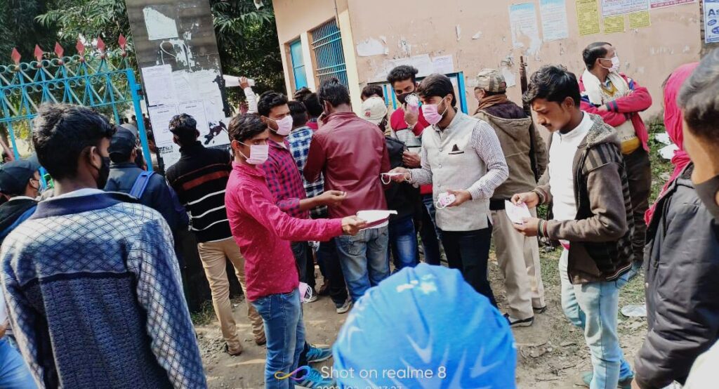 जन अधिकार छात्र परिषद के कार्यकर्ताओं ने छात्र नेता रमण झा के नेतृत्व में फारबिसगंज कॉलेज फारबिसगंज में हो रहें इंटरमीडिएट की परीक्षा में परीक्षार्थियों के बीच मास्क और सैनिटाइजर का वितरण किया।छात्र नेता रमण झा ने कहा कोरोना की तीसरी लहर में हो रहे इंटरमीडिएट की परीक्षा में समलित होने वाले छात्र छात्राओं को कोरोना वायरस से बचाव की जानकारी देते हुए लोगों के बीच मास्क बांटे ।