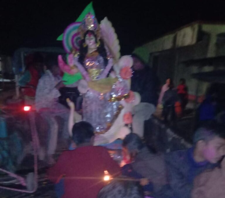विद्या की देवी मां सरस्वती की मूर्ति का विसर्जन परंपरागत ढंग से किया गया। मां सरस्वती की प्रतिमाओं का विसर्जन पूरे श्रद्धा व सम्मान के साथ किया गया। इस दौरान युवकों की टोलियां गाजे-बाजे के साथ मूर्ति विसर्जन के लिए निकली। प्रखंड क्षेत्र के विभिन्न स्कूलों व धार्मिक स्थलों सहित विभिन्न जगहों पर स्थापित की गई विद्या की अधिष्ठात्री मां सरस्वती की प्रतिमा का विसर्जन नदी व तालाबों में किया गया। वहीं डांगुजोत में भी गाजे बाजे के साथ जुलूस निकाल कर मां सरस्वती को नम आंखों से विदाई दी गयी। इस दौरान पूरा वातावरण मां सरस्वती के जयकारों से गूंज उठा ।