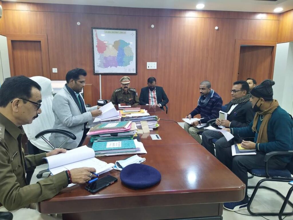 जिला पदाधिकारी प्रशांत कुमार सीएच की अध्यक्षता में शराबबंदी का कड़ाई से अनुपालन सुनिश्चित कराने एवं स्पीडी ट्रायल के तहत दोषियों को सजा दिलाने हेतु जिला कोर कमीटी के पदाधिकारियों के साथ जिला पदाधिकारी के कार्यालय वेश्म में बैठक आहूत की गई। सर्वप्रथम पूर्व बैठक में दिए गए निर्देशों के अनुपालन को लेकर बिंदुवार गहन समीक्षा की गई। उत्पाद अधीक्षक द्वारा बताया गया कि 01 फरवरी से लेकर 10 फरवरी 2022 तक कुल 616 छापेमारी की गई है। जिसमें 57 लोगों को गिरफ्तार कर न्यायिक हिरासत में भेजा गया है। कुल 38 अभियोग दर्ज किए गये हैं। कुल 1508 लीटर देशी एवं 4555 लीटर विदेशी शराब जब्त किये हैं जिसमें कुल 2412 लीटर शराब का विनिष्ठिकरण किया गया है।