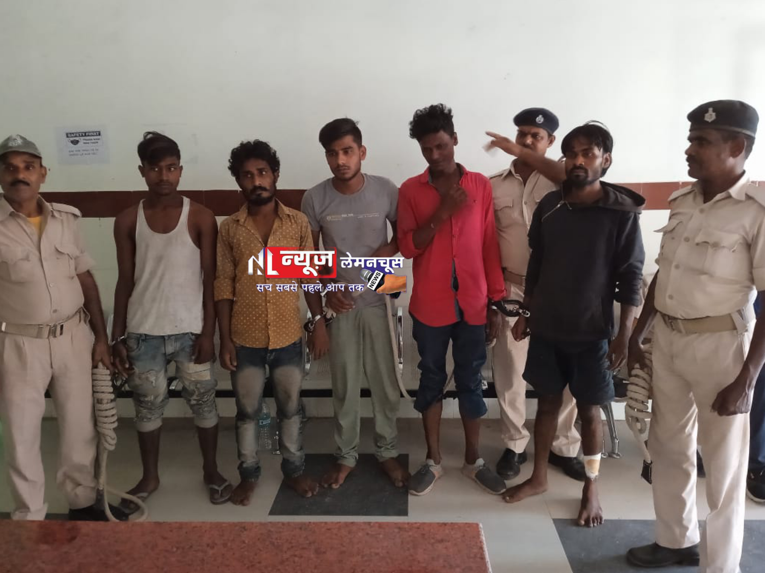 शुक्रवार को सदर अस्पताल में मेडिकल जांच के बाद बंगाल के फाटापुकुर निवासी फिरोज ग्वाला पिता मनोज ग्वाला, खगड़ा निवासी असराफुल पिता जमालुद्दीन अंसारी, लोहारपट्टी निवासी रेहान पिता सकीमुल, लहरा फुलवारी निवासी कौसर आलम पिता मो.सुलेमान और मनौरा निवासी मो.आलम पिता मो.नासिर को न्यायिक हिरासत में जेल भेज दिया।