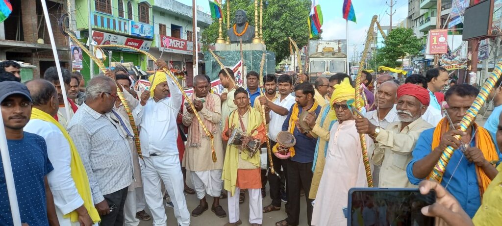 या प्रभात फेरी पटेल चौक से शुरू होकर भभुआ शहर का भ्रमण करते हुए शहीद स्तंभ तक आकर समाप्त हुआ जिसमें गोंड आदिवासी समाज के रीति रिवाज के तहत नाच गान करते हुए प्रभात फेरी किया गया।