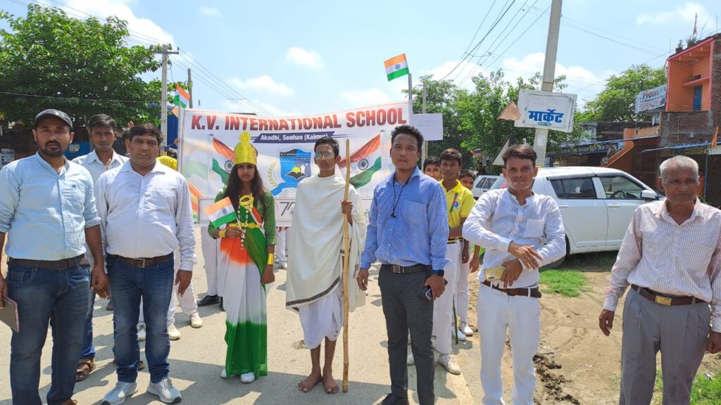कैमूर जिले के सोनहन थाना क्षेत्र के K V इंटरनेशनल स्कूल अकोढी के बच्चों द्वारा आजादी के 75 वें अमृत महोत्सव के अवसर पर तिरंगा पद यात्रा निकाला गया। जिसमें विद्यालय के चेयरपर्सन बृज किशोर उपाध्याय, डायरेक्टर सुमन उपाध्याय, प्रिंसिपल आशीष उपाध्याय एवं शिक्षकों के साथ साथ काफी संख्या में छात्र-छात्राओं ने भाग लिया।