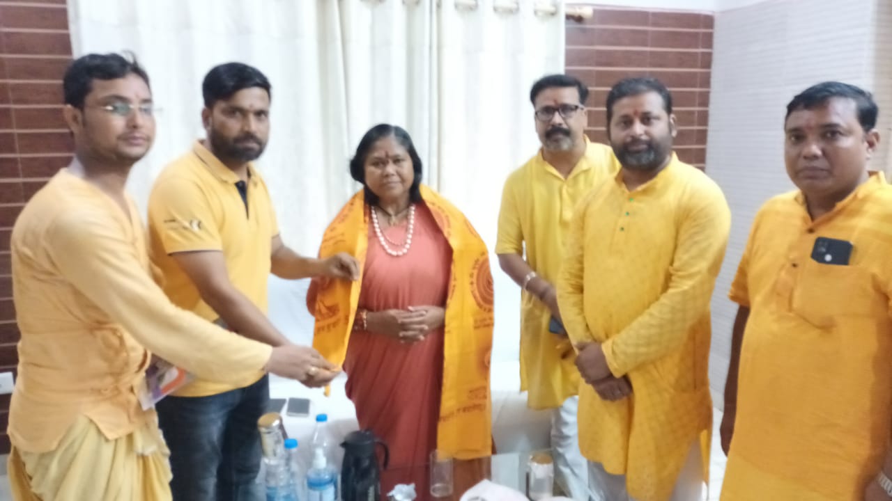 केंद्रीय राज्य मंत्री ग्रामीण विकास एवं खाद्य मंत्रालय साध्वी निरंजन ज्योति से सर्किट हाउस में गायत्री परिवार ट्रस्ट,किशनगंज के सदस्यों के साथ शिष्टाचार मुलाकात हुआ ।गायत्री परिवार के द्वारा साध्वी निरंजन को गायत्री मंत्र चादर देकर उनका भव्य स्वागत किया ।साथ ही गायत्री परिवार के संस्थापक युग ऋषि तपोनिष्ठ युग दृष्टा पंडित श्री राम शर्मा आचार्य द्वारा रचित वांगमय, साहित्य, मासिक अखण्ड ज्योति पत्रिका ओर हरिद्वार का गंगा जल भेंट स्वरूप दिया गया ।