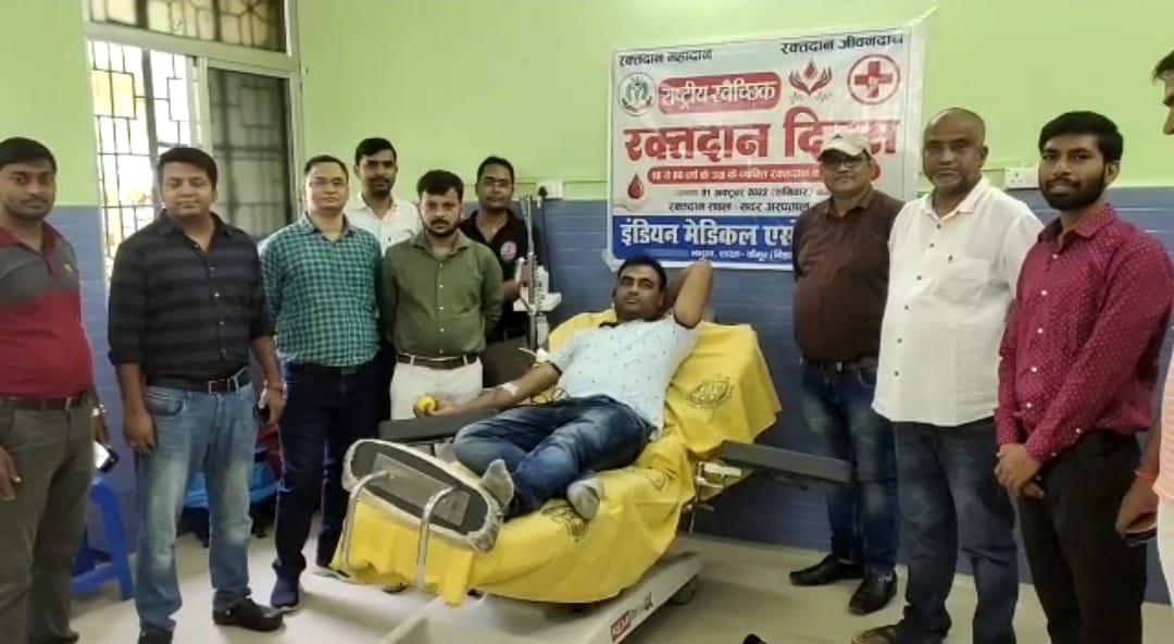 रक्त के अभाव मे किसी भी मरीज की जान न जाए , इसके लिए इंडियन मेडिकल एसोसिएशन भभुआ कैमूर शाखा द्वारा ” राष्ट्रीय स्वैच्छिक रक्तदान दिवस ” के अवसर पर आज दिनांक 01 अक्टूबर 2022 दिन शनिवार को सदर अस्पताल भभुआ मे रक्तदान शिविर आयोजित किया गया । रक्त की ये यूनिटें कैंसर, थैलेसिमिया , लावारिस मरीज, एनमिक गर्भवती समेत अन्य जरूरतमंद मरीजों के उपचार मे सहायक होगी । इस रक्तदान शिविर मे शामिल रक्तदाताओं को आईएमए कैमूर की तरफ से प्रशस्तिपत्र भी दिया गया ।