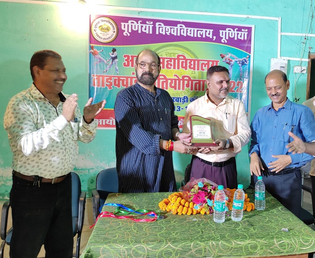 समापन समारोह के मुख्य अतिथि के रूप में पूर्णियाँ विश्वविद्यालय के खेल पदाधिकारी डॉ. सी.के.मिश्रा ने कहा कि अन्तर विश्वविद्यालय खेल प्रतियोगिता में भाग लेने के लिए सभी खेलों के बेस्ट खिलाड़ियों की टीम बनाई जाएगी।