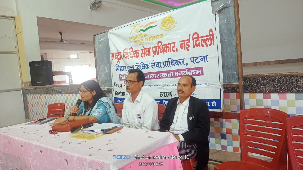 राष्ट्रीय राज्य विधिक सेवा प्राधिकार, नई दिल्ली के निर्देशानुसार जिले में लगातार विधिक जागरूकता अभियान चलाया जा रहा है ।उसी क्रम में “हक हमारा भी तो है ” कार्यक्रम के तहत शुक्रवार को संत जेवियर्स स्कूल में विधिक जागरूकता शिविर का आयोजन किया गया। उक्त जागरूकता शिविर में बच्चों के विधिक अधिकार के साथ साथ NALSA (Child friendly legal services to children and their protection) scheme 2015 के संबंध में जानकारी दी गयी।
