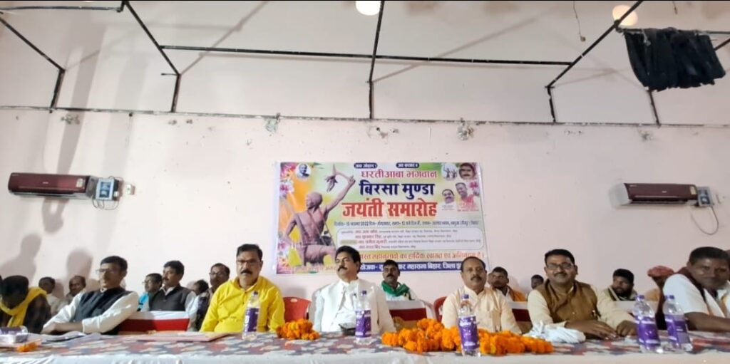 मंगलवार को युवा खरवार महासभा बिहार के जिला इकाई कैमूर द्वारा भभुआ शहर के लिच्छवी भवन में धरती आबा बिरसा मुंडा का जयंती समारोह मनाया गया। जिसकी अध्यक्षता शेभनाथ खरवार व संचालन जितेंद्र खरवार ने की। कार्यक्रम में मुख्य अतिथि के रूप में पूर्व कृषि मंत्री सुधाकर सिंह व भभुआ विधायक भरत बिंद रहे। कार्यक्रम में सुधाकर सिंह, भरत बिंद व प्रदेश अध्यक्ष वीरेंद्र कुशवाहा ने कहा कि खरवार समाज की पहचान के लिए लड़ाई जो जाति प्रमाणपत्र के लिए वर्षेा से लड़ी जा रही है उस लड़ाई में हमलोग तन मन धन से साथ है।