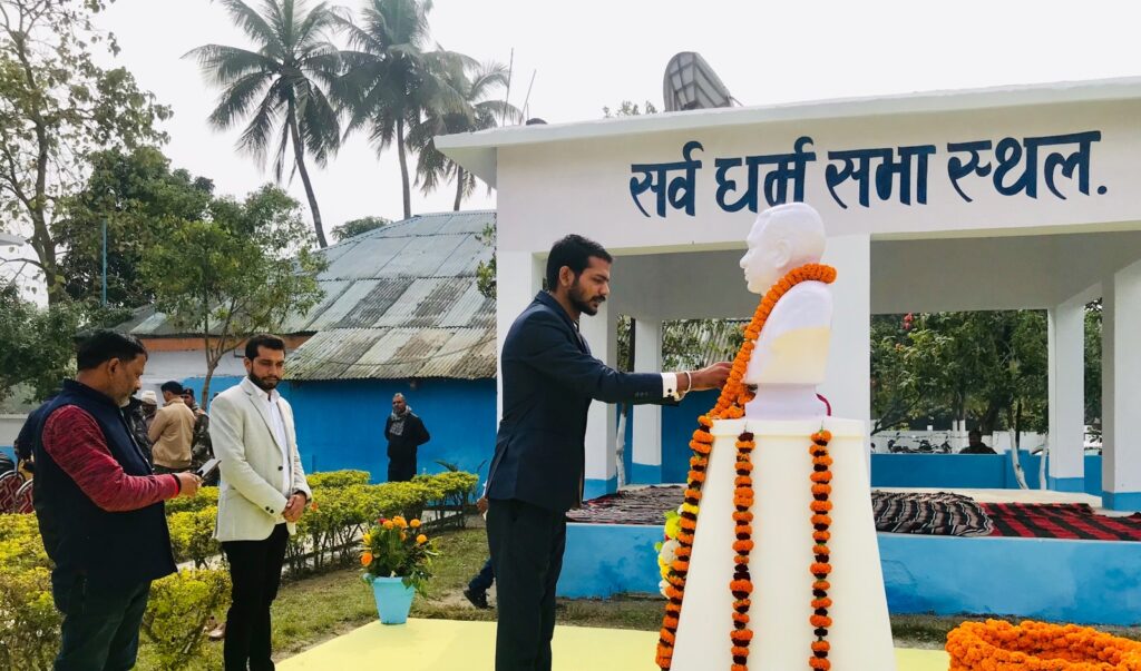 देश के पूर्व रेलमंत्री व मिथिला की शान के नाम से जाने जाने वाले स्व ललित नारायण मिश्र की 49वीं पुण्यतिथि पर बलुआ स्थित उनके निवास पर बिहार सरकार के द्वारा आयोजित राजकीय बलिदान दिवस कार्यक्रम में शिरकत कर एक पहल के संस्थापक ई आयुष अग्रवाल ने उनकी प्रतिमा पर पुष्प अर्पित किया।