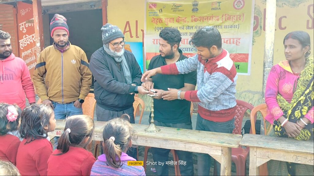 नेहरू युवा केंद्र किशनगंज के द्वारा स्वामी विवेकानंद जी के जयंती के उपलक्ष्य में राष्ट्रीय युवा दिवस कार्यक्रम का आयोजन स्थान समेसर बहदूरगंज में किया गया । इस कार्यक्रम का उद्घाटन विद्यालय के निदेशक एवं सभी शिक्षकगण के द्वारा दीप प्रज्वलित कर किया गया। इस कार्यक्रम के तहत युवा क्लब महिला मंडल के सभी सक्रिय सदस्यों ने भाग लेकर स्वामी विवेकानंद जी के जीवनी पर परिचर्चा करते हुए विद्यालय के निदेशक ने सभी उपस्थित प्रतिभागियों को स्वामी विवेकानंद जी के पदचिन्ह पर चलने की प्रेरणा किया गया।