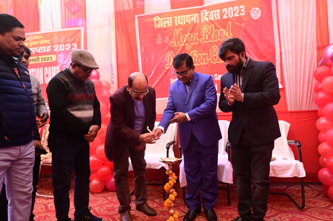 जिला स्थापना दिवस के पूर्व संध्या ओर सड़क सुरक्षा सप्ताह के अवसर पर इंडियन रेडक्रॉस सोसाइटी के द्वारा सदर अस्पताल ब्लड बैंक में मेगा ब्लड डोनेशन कैम्प लगाया गया । रक्तदान शिविर का विधिवत उद्घाटन जिला पदाधिकारी सह अध्यक्ष भारतीय रेडक्रोस सोसाइटी श्रीकांत शास्त्री ने दीप प्रज्वलित कर किया ।