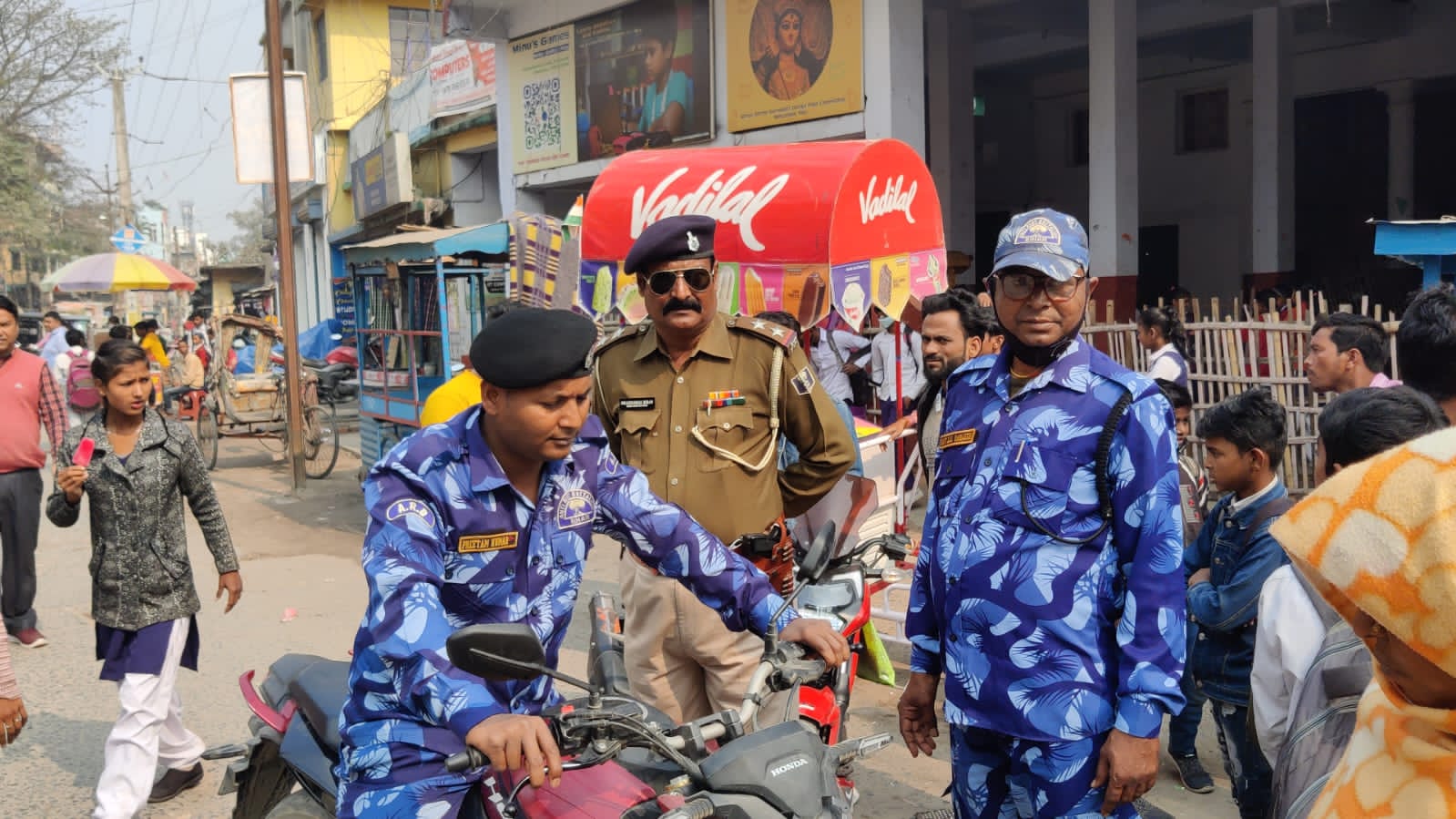 उसी क्रम में शहर के डे मार्केट में वाहन जांच अभियान चलाकर बिना हेलमेट और बिना कागजात वाले बाइक चालको से जुर्माना भी वसूला गया ।साथ ही संदिग्ध युवकों से पूछताछ भी की गई।