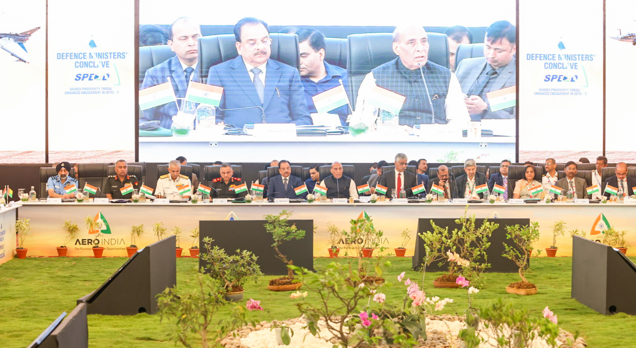 रक्षा मंत्री श्री राजनाथ सिंह ने मंगलवार को बेंगलुरु में एयरो इंडिया 2023 के दौरान रक्षा मंत्रियों के सम्मेलन में 27 देशों के रक्षा व उप-रक्षा मंत्रियों की मेजबानी की। सम्मेलन की वृहद विषयवस्तु ‘शेयर्ड प्रॉस्पेरिटी थ्रू एनहांस्ड एंगेजमेंट्स इन डिफेंस’ (स्पीड) थी। इसके तहत क्षमता निर्माण (निवेशों, अनुसंधान व विकास, संयुक्त उपक्रमों, सह-विकास, सह-उत्पादन और रक्षा उपकरणों के लिये प्रावधान करने के जरिये), प्रशिक्षण, अंतरिक्ष, कृत्रिम बौद्धिकता तथा समुद्री सुरक्षा के क्षेत्र में सहयोग बढ़ाने से सम्बंधित पक्षों पर गौर किया गया।
