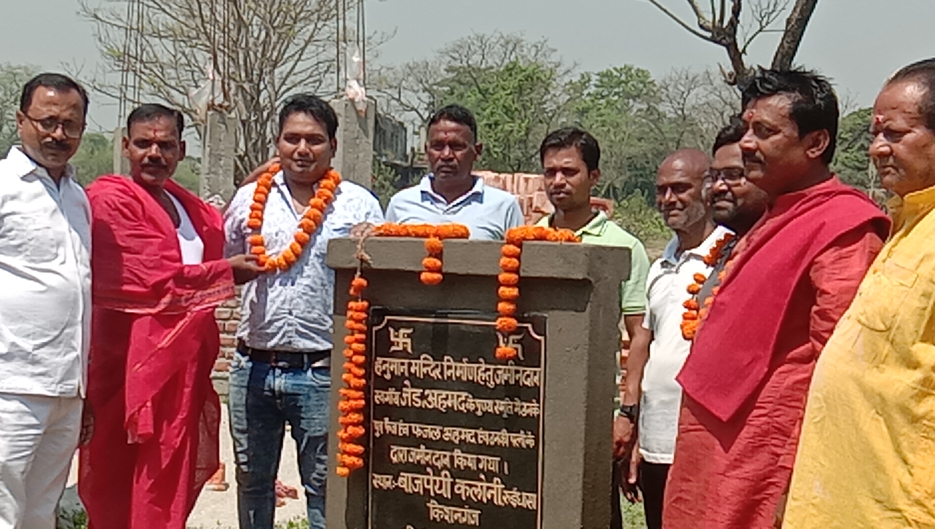 वही आज श्री हनुमान जन्मोत्सव के पावन मौके पर विधिवत रूप से फैज और फजल अहमद द्वारा दान पत्र पर हस्ताक्षर किया गया और मंदिर निर्माण की आधार शिला रखी गई । फैज ने बताया की पिता जी की आखरी इच्छा थी साथ ही कहा की सभी को एक दूसरे की जरूरत पड़ती है और मिल जुल कर रहने की अवश्यकता है ।