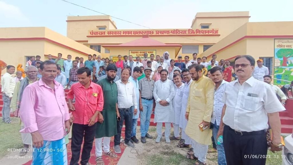 पंचायत सरकार भवन के संचालन से लोगों का समय व भाड़ा-किराया दोनों की बचत होगी। मौके पर किशनगंज विधायक इजहारुल हुसैन, सांसद प्रतिनिधि परवेज आलम,एहसान हसन, युवा कांग्रेस जिला अध्यक्ष मो आजाद साहिल,जिला पंचायती राज पदाधिकारी जफर आलम, जिला कार्यक्रम पदाधिकारी दीपक साह,डायरेक्टर डीआरडीए विकास कुमार,बीडीओ आराधना कुमारी, बीपीआरओ सादाब अनवर,पीओ मनरेगा ऋषि प्रकाश, पोठिया जीविका बीपीएम अजय कुमार,एरिया कोर्डिनेटर विनोद कुमार,आवास पर्यवेक्षक राजे कुमार, छत्तरगाछ मुखिया अबुल कासिम,भोटाथाना मुखिया मो मरगूब आलम,पंचायत सचिव सोनू कुमार,कनीय अभियंता नेहा कुमारी,कार्यपालक सहायिका गुड़िया कुमारी व अन्य सहित ग्रमीण मौजूद थे।