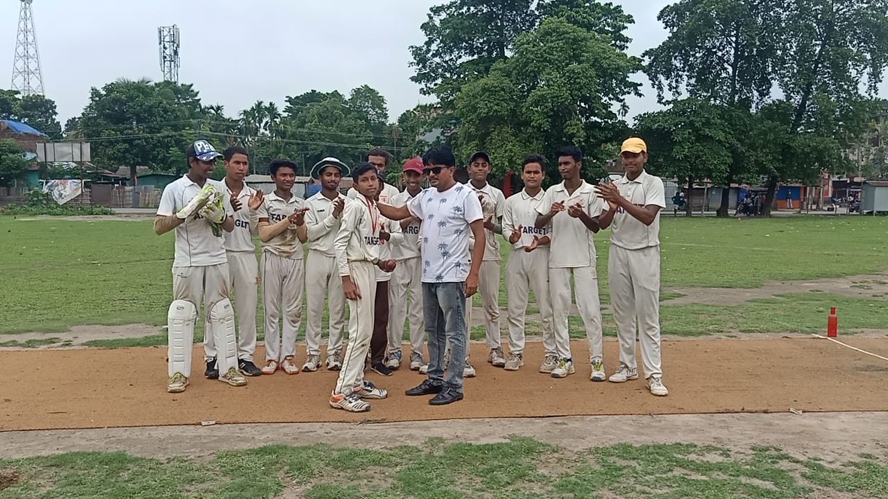 वही टारगेट क्रिकेट एकेडमी जूनियर की ओर से गेंदबाजी करते हुए नैरित दास ने 6 विकेट सौर्य कुमार ने 2 विकेट एवं प्रियांशु ने 2 विकेट हासिल किया शानदार गेंदबाजी 5.5ओवर 11 रन खर्च कर 6 विकेट लेने वाले टारगेट क्रिकेट एकेडमी जूनियर के नेरित दास को मैन ऑफ द मैच चुना गया मैन ऑफ द मैच नैरित को टारगेट क्रिकेट एकेडमी के डायरेक्टर ने मेडल पहनाकर सम्मानित किया ।