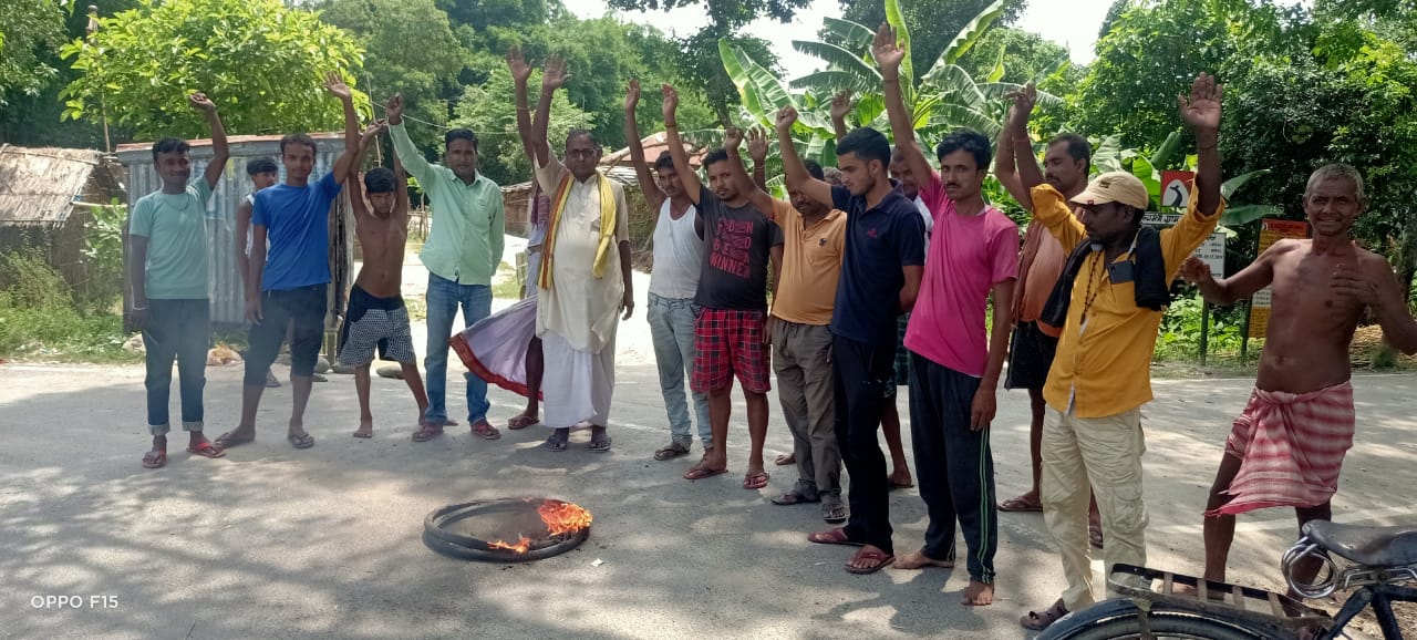 विद्युत विभाग के विरोध में तिरसकुंड पंचायत के बेलई पोठिया में सैकड़ों ग्रामीणों ने टायर जलाकर मुख्य सड़क को घंटो जाम रखा कर दिया।