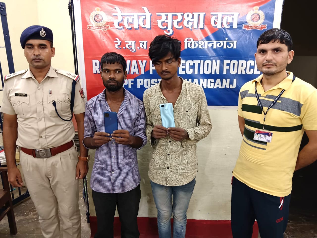 आरपीएफ जवानों ने चोरी की दो मोबाइल के साथ दो चोरों को गिरफ्तार किया है। किशनगंज रेलवेस्टेशन के प्लेटफार्म नंबर दो पर गस्त कर रहे जवानों ने चलती 15962 डाउन डिब्रूगढ़ हावड़ा कामरूप एक्सप्रेस से उतर कर दो युवक को भागते देखा। जिसे जवानों ने पीछा कर दबोच लिया।
