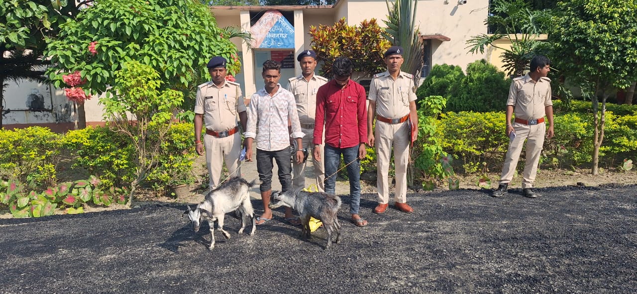 थानाध्यक्ष रंजन यादव के मुताबिक मो सकीर आलम पिता विलाल हुसैन, तजेमुल हक पिता मुरुता अली दोनों निवासी डब्बाडांगी थाना बहादुरगंज जिला किशनगंज को बकरी चोरी कर भागने के क्रम में पकड़ा गया जिनके पास से दो खस्सी बरामद किया गया है।