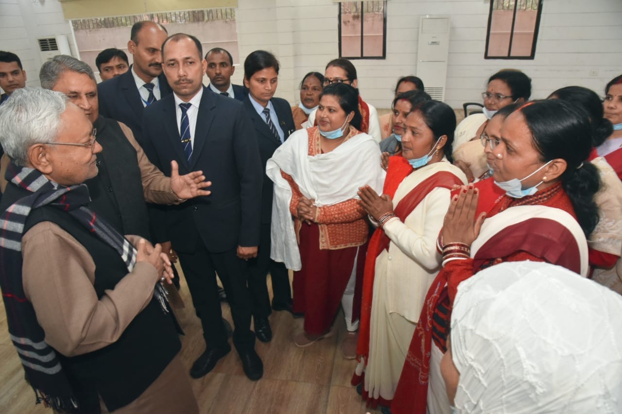 पटना :सीएम नीतीश कुमार ने 1 अणे मार्ग स्थित ‘लोक संवाद’ में बिहार राज्य की आंगनबाड़ी सेविकाओं एवं सहायिकाओं के शिष्टमंडल ने शिष्टाचार मुलाकात की।