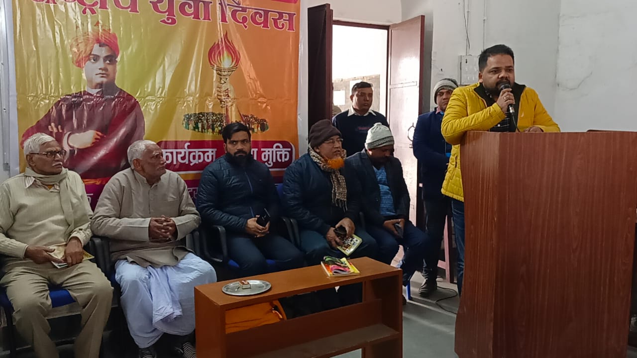 राष्ट्रीय युवा दिवस के अवसर पर गायत्री परिवार ट्रस्ट के द्वारा इंटर हाई स्कूल प्रांगण में स्वामी विवेकानंद की 161 वीं जयंती मनाई है । इस अवसर पर मुख्य अथिति माता गुजरी मेमोरियल यूनिवर्सिटी के रजिस्ट्रार डॉ0 इच्छित भारत ने स्वामी विवेकानंद के जयंती पर दीप प्रज्वलित कर उनके तैलचित्र पर माल्यापर्ण व पुष्प अर्पित किया । उन्होंने युवाओं को सम्बोधित करते कहा कि राष्ट्रीय युवा दिवस पर इस वर्ष का विषय “ उठो, जागो और अपने पास मौजूद शक्ति को पहचानो” है ।