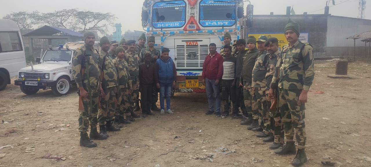 वही बीएसएफ पार्टी ने चालक और सहायकों यानी कुल 05 भारतीय नागरिकों, प) मोहम्मद मलिक (35 वर्ष-चालक), पुत्र मोहम्मद अनिकुल, निवासी गांव-बभानिया, थाना-दलखोला, जिला-उत्तर दिनाजपुर (पश्चिम बंगाल), पप) मोहबुल हक (25 वर्ष), पुत्र मोहम्मद नुहू अली, निवासी गांव-दखिन मोहम्मदपुर, थाना-दलखोला, जिला-उत्तर दिनाजपुर (पश्चिम बंगाल), पपप) दीन मोहम्मद (45 वर्ष) पुत्र आलम मोहम्मद, निवासी ग्राम-टोकीपुर, थाना-रेजीनगर, जिला-मुर्शिदाबाद (पश्चिम बंगाल), पअ) कलीम अंसारी (30 वर्ष) पुत्र फूटन अंसारी, निवासी ग्राम-उत्तर बस्ती, थाना-पंजीपारा, जिला-किशनगंज (पश्चिम बंगाल) और वी) हारिल यादव (40 वर्ष) पुत्र शंकर यादव ग्राम-बाबूपुर थाना-पूरनपुर, जिला-कटिहार (बिहार) को भी गिरफ्तार किया ।