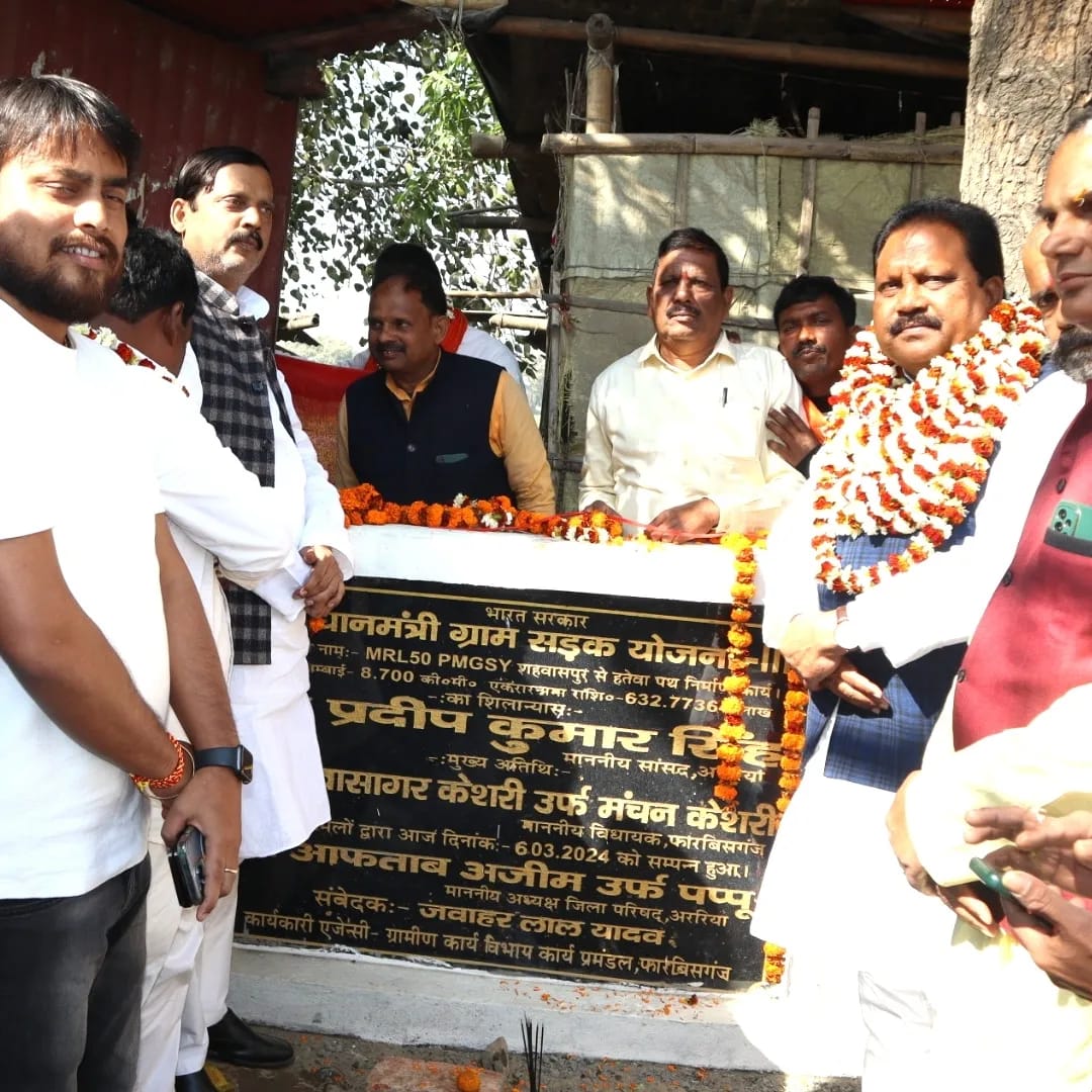 अररिया सांसद प्रदीप कुमार सिंह ने जिले के फारबिसगंज तथा रानीगंज प्रखंड में प्रधानमंत्री ग्रामीण सड़क योजना के तहत ₹22 करोड़ 80 लाख रुपये की लागत से बनने वाली करीब 32 किमी की चार महत्वपूर्ण सड़कों का शिलान्यास किया। फारबिसगंज तथा रानीगंज विधानसभा क्षेत्र अंतर्गत बनने वाली इन चार अलग-अलग सड़कों के निर्मांण से गांवों से शहर की दूरी कम हो जाएगी पहली सड़क ओराही पूर्वी पंचायत के बोकरा होते हुए बरदाहा लाईन चौक तक बनाई जाएगी जिसकी लंबाई 7.5 किलोमीटर होगी, दुसरी सड़क सैफगंज से सिमरहा तक बनाई जाएगी जिसकी लंबाई 6.61 किमी होगी, तीसरी सड़क शहवासपुर से हतेवा तक बनाई जाएगी जिसकी लंबाई 8.700 किमी होगी जबकि चौथी सड़क रानीगंज प्रखंज के कोहवार बिशनपुर से भवानी नगर तक 9.1 किमी की होगी।