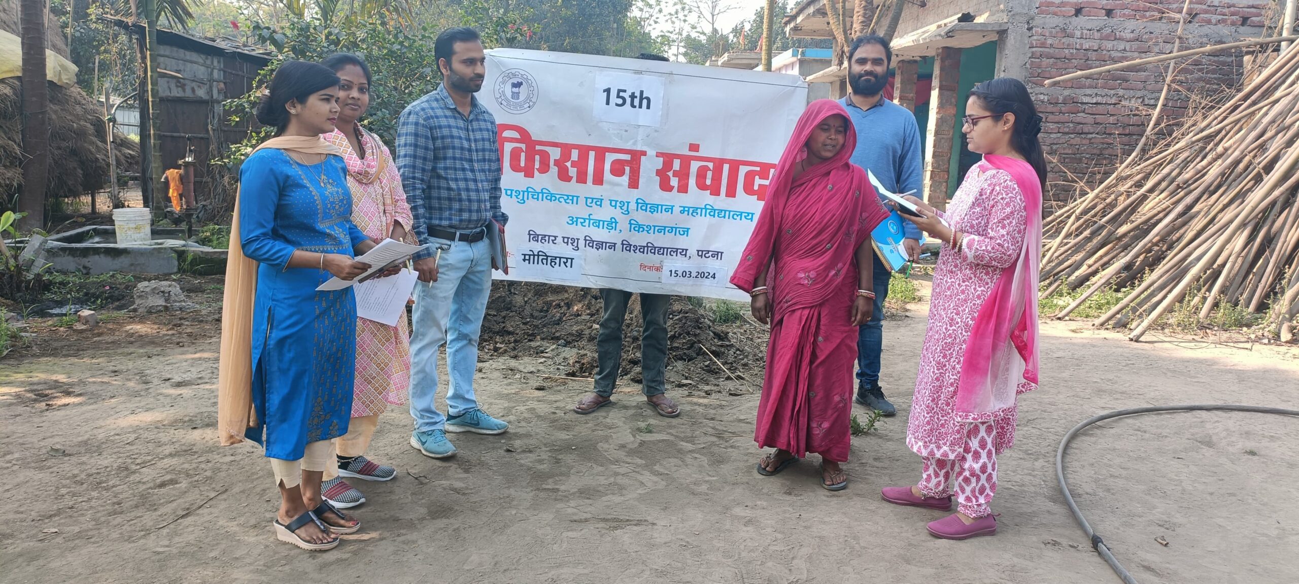 शनिवार को पशु चिकित्सा एवं पशु विज्ञान महाविद्यालय,अर्राबाड़ी मोतीहारा, हलामाला में किसान संवाद का आयोजन किया गयाI पशुपालकों के लिए आयोजित कार्यक्रम में महाविद्यालय के लगभग 14 वैज्ञानिकों ने मार्गदर्शन कियाI इस दौरान लगभग 25 पशुपालक परिवारों से उनके द्वार पर संपर्क कर पशुपालन से संबंधित वैज्ञानिक गतिविधियों एवं पशुपालन महाविद्यालय में उपलब्ध सुविधाओं के बारे में जानकारी दी गई।