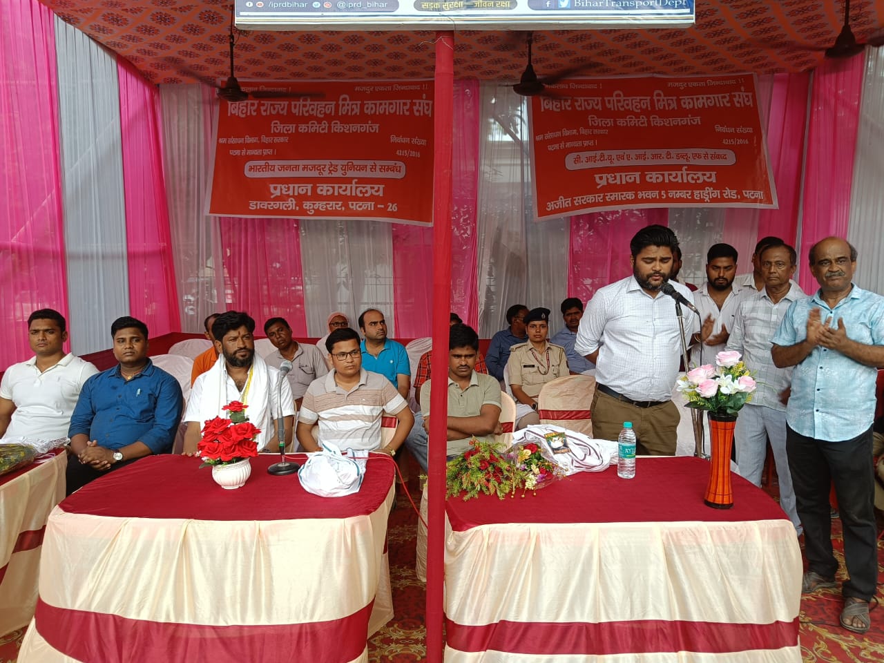 किशनगंज ड्राइवर डे के अवसर पर भारतीय मजदूर संघ, सीटू और ऑल इंडिया रोड वर्कर यूनियन द्वारा कार्यक्रम आयोजित किया गया।मुख्य वक्ता जिला अध्यक्ष भाजपा सुशांत गोप और सलिल प्रशांत अपर जिला परिवहन पदाधिकारी, अवर निरीक्षक परिवहन विभाग पंकज कुमार ,मोटर जांच निरीक्षक,मजदूर संघ के जिला संयोजक चंचल मुखर्जी ने सुरक्षा और चालको की सुविधा हेतु चलाई जा रही योजनाओं की चर्चा की।