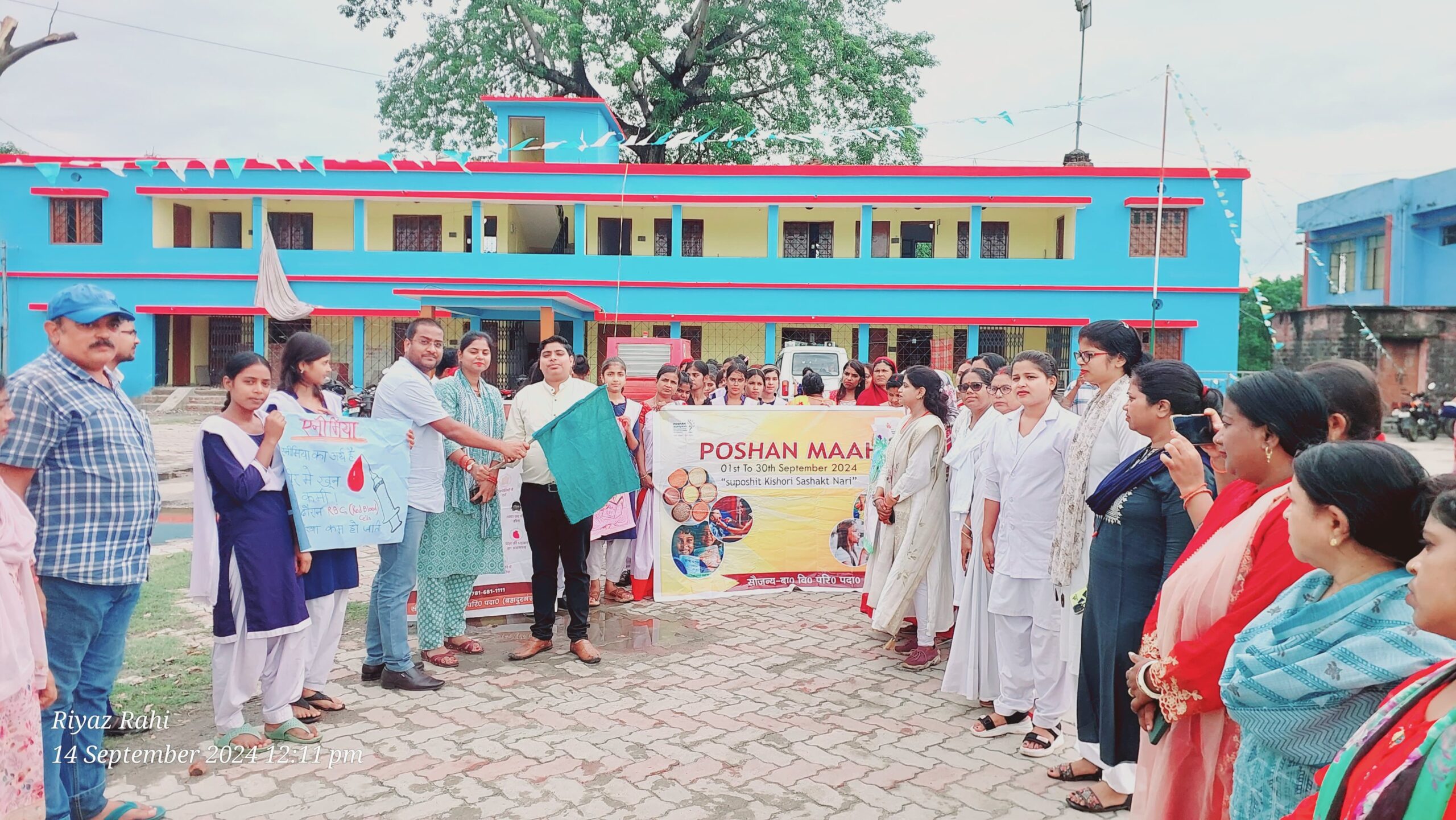 बाल विकास परियोजना कार्यालय बहादुरगंज में कार्यरत कर्मियों के द्वारा पोषण माह को मद्देनजर रखते हुए प्रखंड मुख्यालय परिसर से जागरूकता रैली निकाली।जहां परिक्षयमान उप समाहर्ता सह प्रखंड विकास पदाधिकारी बहादुरगंज श्रीति कुमारी ने हरी झंडी दिखाकर जहां जागरूकता रैली को रवाना किया। वहीं यह जागरूकता रैली प्रखंड मुख्यालय परिसर से निकलकर शिव मंदिर चौक के रास्ते प्रोजेक्ट बालिका उच्च विद्यालय बहादुरगंज तक गई।