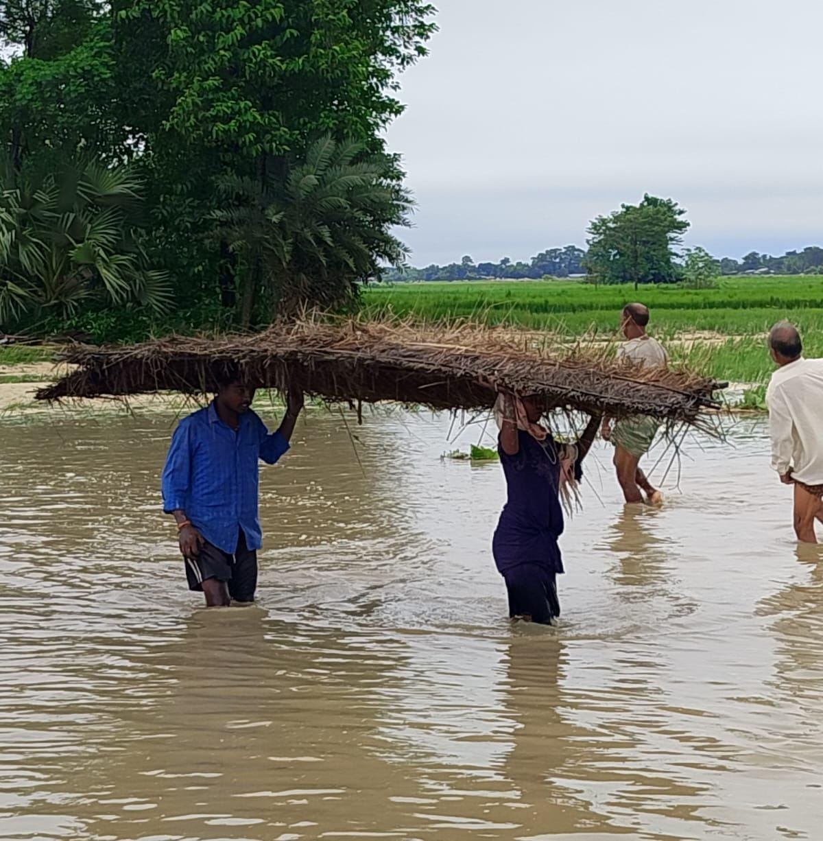 चारों ओर पानी ही अपनी नजर आ रही है,लोगों का जीना मुहाल हो गया।भारी बारिश व भीषण बाढ़ से क्षेत्र में जन जीवन अस्त-व्यस्त हो गया है।मिली जानकारी के मुताबिक भाग कजलेटा, खुरखुरिया,टेपुवाबारी, आमबाड़ी ,हाथीलदा,लोधा बाड़ी,आशा, धाप्पर टोला,मालीटोला, गर्राटोली, सुंदरबाड़ी,बाभनटोली, हरहरिया,जरियाभिटटा, सुहियाहाट,बभनगामा, पुरन्धा, कास्तखर्रा,गढ़ीटोला, खजूरबाड़ी हवाकोल, कोठी टोला,बिहार चैनपुर, देवरी,पंखाबाड़ी,चैनपुर, बेतबाड़ी,खजूरबाड़ी,देवरी,बिहार मुसहरी, उत्तर वाहिनी देवरी, हाटगांव,सुहिया बस्ती,बैगना खाड़ी टोला, तेघरिया इत्यादि गांवों में बाढ़ का पानी घर आंगन में घुस गया है।
