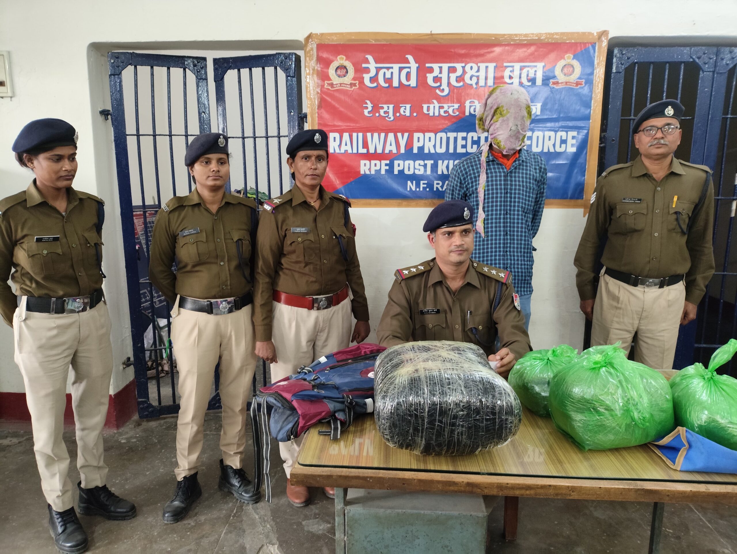 आरपीएफ की टीम ने एनजेपी से नई दिल्ली जा रही एक्सप्रेस ट्रेन की एसी बोगी से 12.9 केजी गांजा जैसा मादक पदार्थ जब्त किया है। कार्रवाई मंगलवार को सुबह 11 बजे के करीब की गई। ट्रेन 12523 में मादक पदार्थ ले जाया जा रहा था।मादक पदार्ध के साथ एक युवक को गिरफ्तार किया गया है।पकड़ा गया आरोपी तारकेश्वर नाथ बंगाल के भक्ति नगर का रहने वाला है।आरपीएफ निरीक्षक एच के शर्मा के नेतृत्व में कार्रवाई की गई।