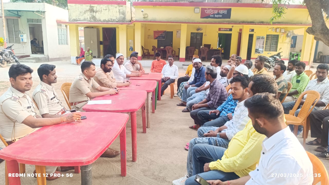 पोठिया थाना व छत्तरगाच्छ ओपी परिसर में गुरुवार को ईद-उल-फितर एवं चैती छठ और आगामी रामनवमी पर्व को लेकर शांति समिति की बैठक आयोजित की गयी।पोठिया थाना में इंस्पेक्टर सह थानाध्यक्ष अंजय अमन तथा छत्तरगाच्छ में राजू कुमार की अध्यक्षता में आयोजित बैठक में कई पंचायतों से प्रबुद्ध जन,जनप्रतिनिधि व बुद्धिजीवी शामिल हुए।
