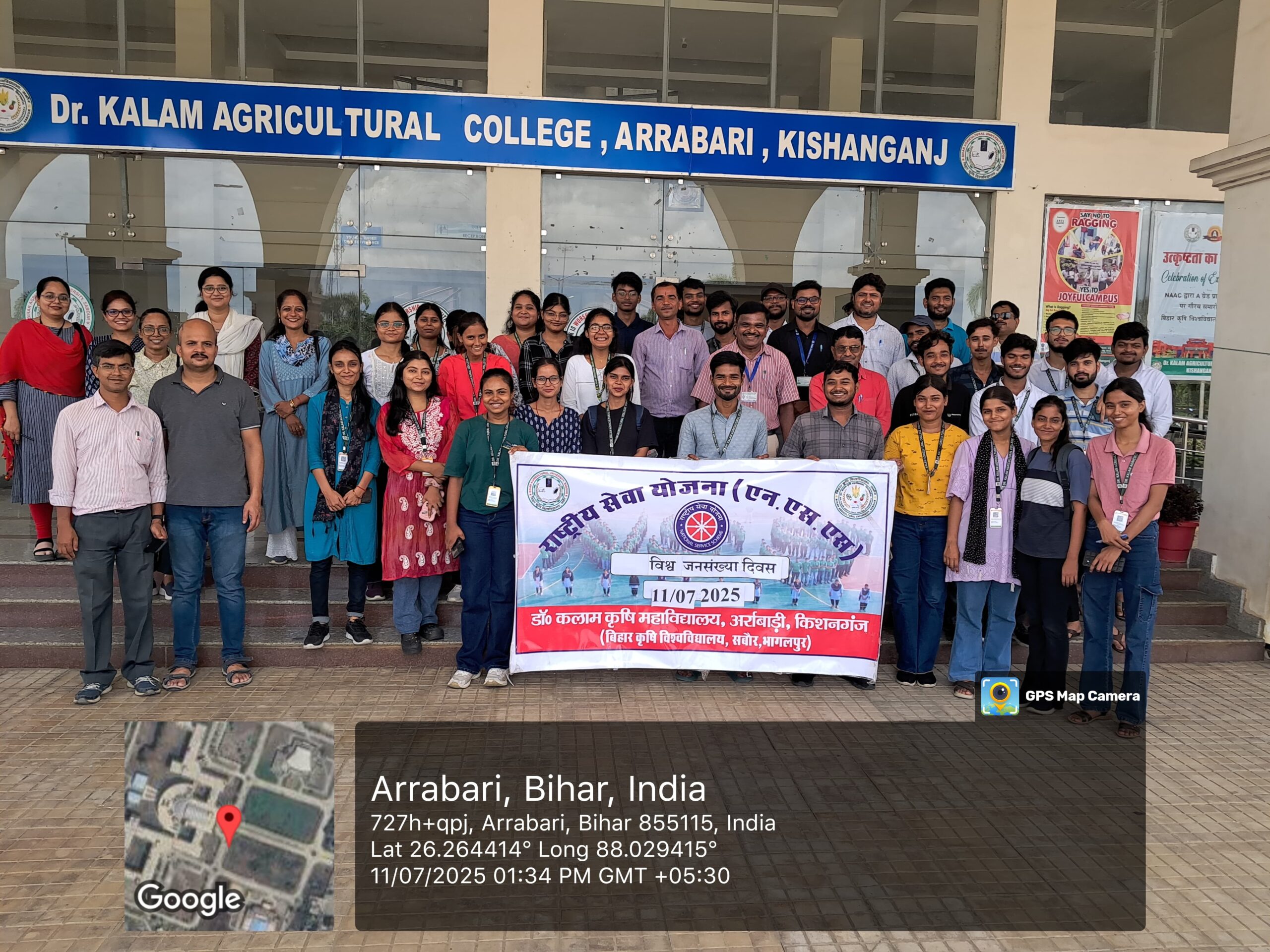 विश्व जनसंख्या दिवस, 2025 के उपलक्ष्य में डॉ. कलाम कृषि महाविद्यालय (डीकेएसी) में महाविद्यालय के एसोसिएट डीन-सह-प्राचार्य डॉ. के. सत्यनारायण के मार्गदर्शन में एक कार्यशाला-सह-जागरूकता कार्यक्रम आयोजित किया गया। कार्यक्रम का समन्वयन क्रमशः प्रभारी एनएसएस और सह-प्रभारी, डीकेएसी, किशनगंज डॉ. मुकुल कुमार और डॉ. आरती शर्मा ने किया।