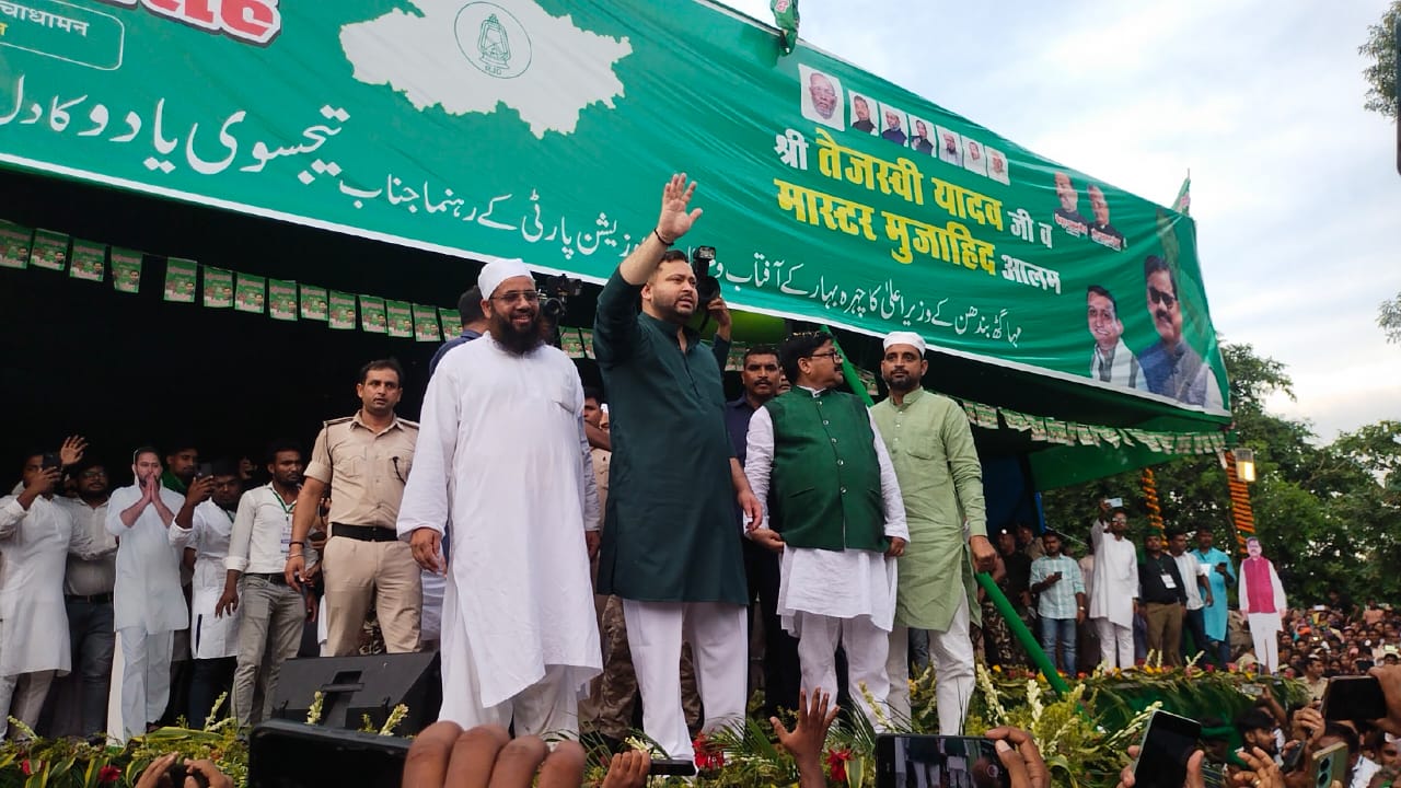 गौरतलब हो कि पूर्व विधायक मुजाहिद आलम ने बीते दिनों वक्फ संशोधन कानून पारित होने के बाद जेडीयू से इस्तीफा दिया था ।जिसके बाद आज उन्होंने राजद की सदस्यता ग्रहण की।आयोजित कार्यक्रम को संबोधित करते हुए तेजस्वी यादव ने कहा कि हमारी सरकार बनेगी तो राज्य में कभी भी एनआरसी लागू नहीं होने नहीं दिया जाएगा,साथ ही वक्फ कानून को फाड़ दिया जाएगा।तेजस्वी यादव ने कहा की मतदाता पुनरीक्षण के माध्यम से चुनाव आयोग दलितों और मुसलमानों का नाम कटवाना चाहती है।