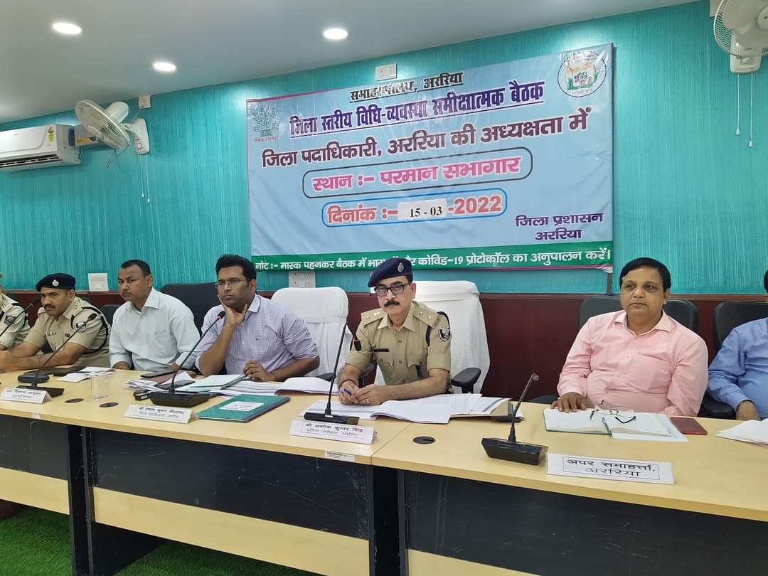 अररिया :जिला पदाधिकारी की अध्यक्षता में हुई बैठक,होली एवं शब-ए-बारात में विधि व्यवस्था संधारण को लेकर दिए गए जरूरी निर्देश March 15, 2022 No Comments