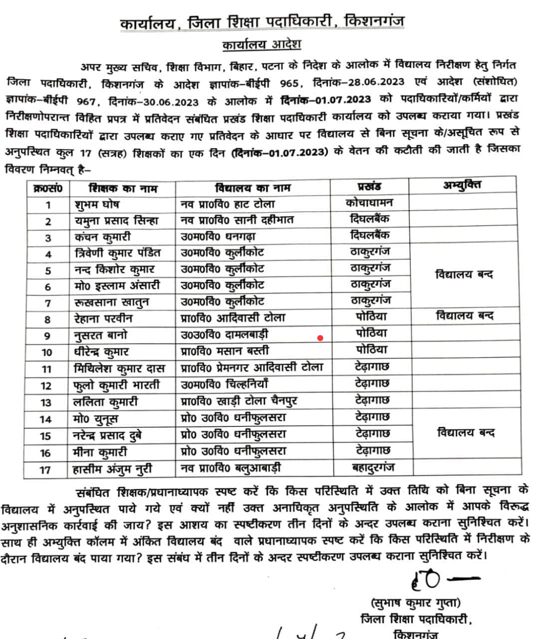 किशनगंज :टेढ़ागाछ में विद्यालय निरीक्षण कर्मी की लापरवाही उजागर, सेवा निवृत्त शिक्षक की काटी गई हाजरी July 4, 2023 No Comments