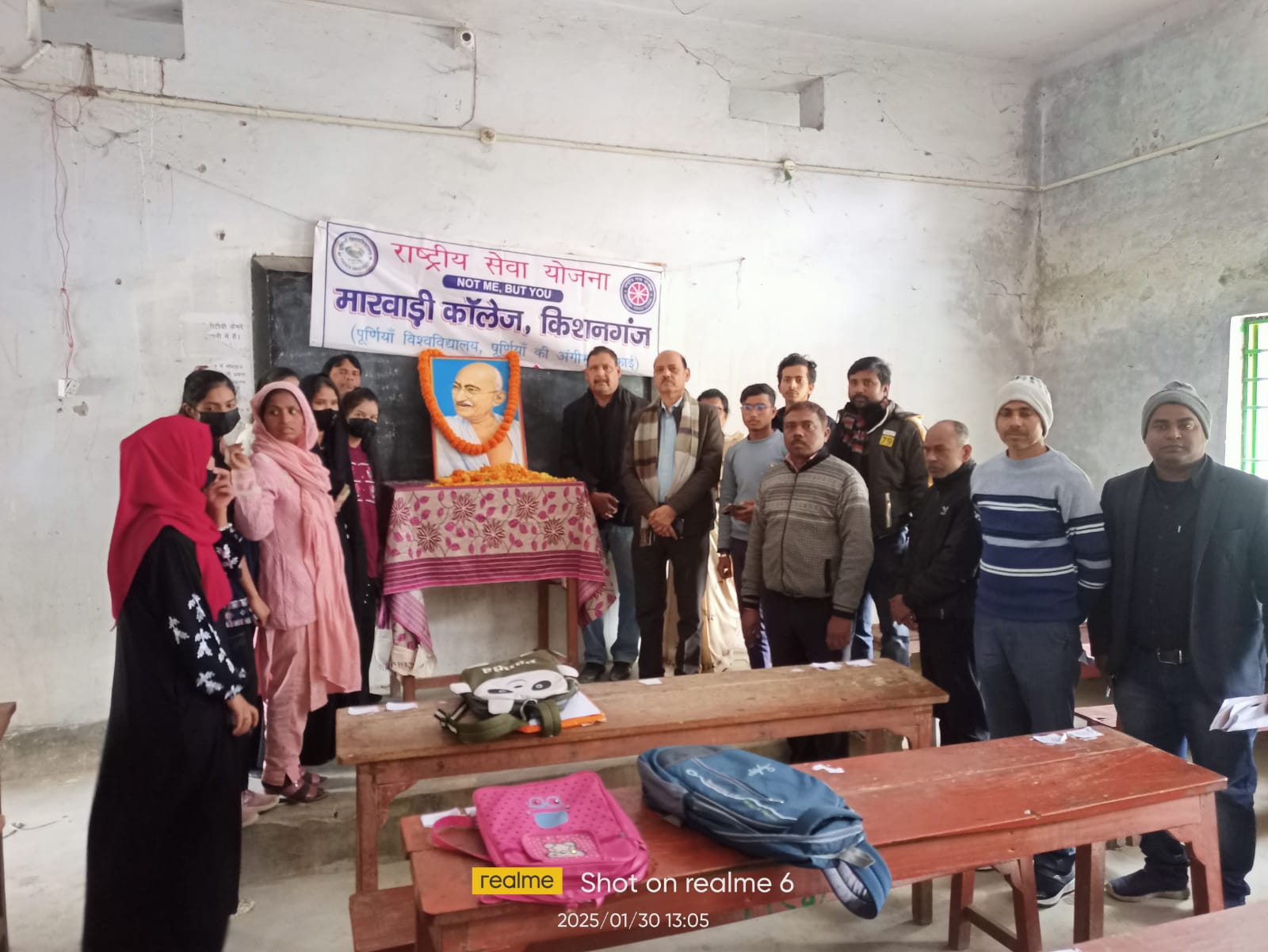 मारवाड़ी कॉलेज किशनगंज में एनएसएस ईकाई द्वारा महात्मा गांधी की पुण्यतिथि श्रद्धा और सम्मान के साथ मनाई गई January 30, 2025 No Comments