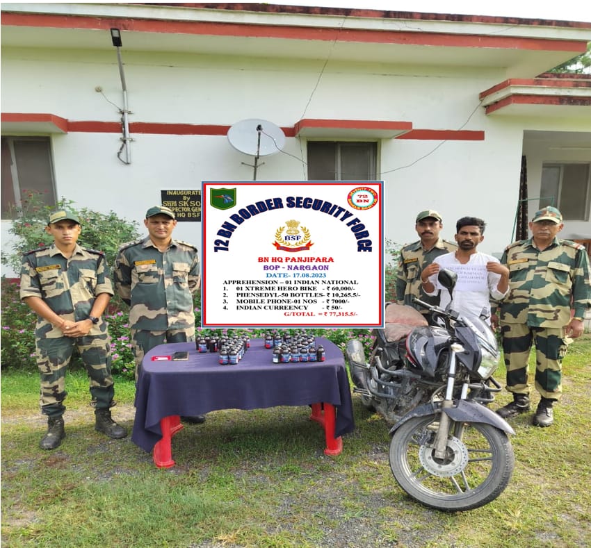 बीएसएफ जवानों ने प्रतिबंधित कफ सिरप के साथ एक तस्कर को किया गिरफ्तार,पुलिस के किया हवाले August 18, 2023 No Comments
