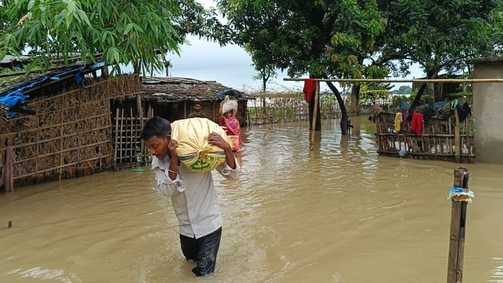 चारों ओर पानी ही अपनी नजर आ रही है,लोगों का जीना मुहाल हो गया।भारी बारिश व भीषण बाढ़ से क्षेत्र में जन जीवन अस्त-व्यस्त हो गया है।मिली जानकारी के मुताबिक भाग कजलेटा, खुरखुरिया,टेपुवाबारी, आमबाड़ी ,हाथीलदा,लोधा बाड़ी,आशा, धाप्पर टोला,मालीटोला, गर्राटोली, सुंदरबाड़ी,बाभनटोली, हरहरिया,जरियाभिटटा, सुहियाहाट,बभनगामा, पुरन्धा, कास्तखर्रा,गढ़ीटोला, खजूरबाड़ी हवाकोल, कोठी टोला,बिहार चैनपुर, देवरी,पंखाबाड़ी,चैनपुर, बेतबाड़ी,खजूरबाड़ी,देवरी,बिहार मुसहरी, उत्तर वाहिनी देवरी, हाटगांव,सुहिया बस्ती,बैगना खाड़ी टोला, तेघरिया इत्यादि गांवों में बाढ़ का पानी घर आंगन में घुस गया है।