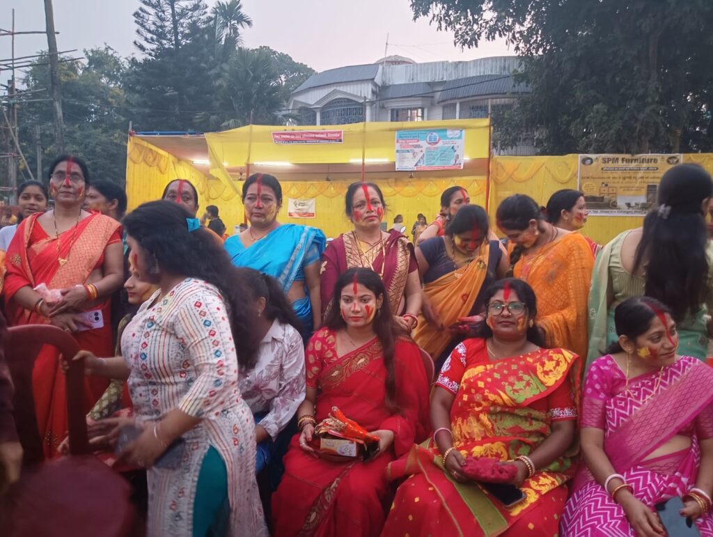 इस धार्मिक अवसर पर बड़ी संख्या में महिलाओं ने हिस्सा लिया और एक दूसरे की मांग में सिंदूर भरकर अपने पति की दीर्घायु और अमर सुहाग की कामना की.सिंदूर खेल बंगाली समाज की एक पुरानी परंपरा है, जिसे विशेष रूप से विजयादशमी के दिन निभाया जाता है. पहले इस रस्म को सिर्फ बंगाली समाज की सुहागिन महिलाएं निभाती थीं, लेकिन अब इसकी धार्मिक महत्ता को समझते हुए अन्य समाज की महिलाएं भी इसमें शामिल होती हैं और बड़े ही उत्साह और उमंग के साथ सिंदूर खेल कर और मां दुर्गा को मिठाई खिला कर उनकी विदाई करती हैं ।
